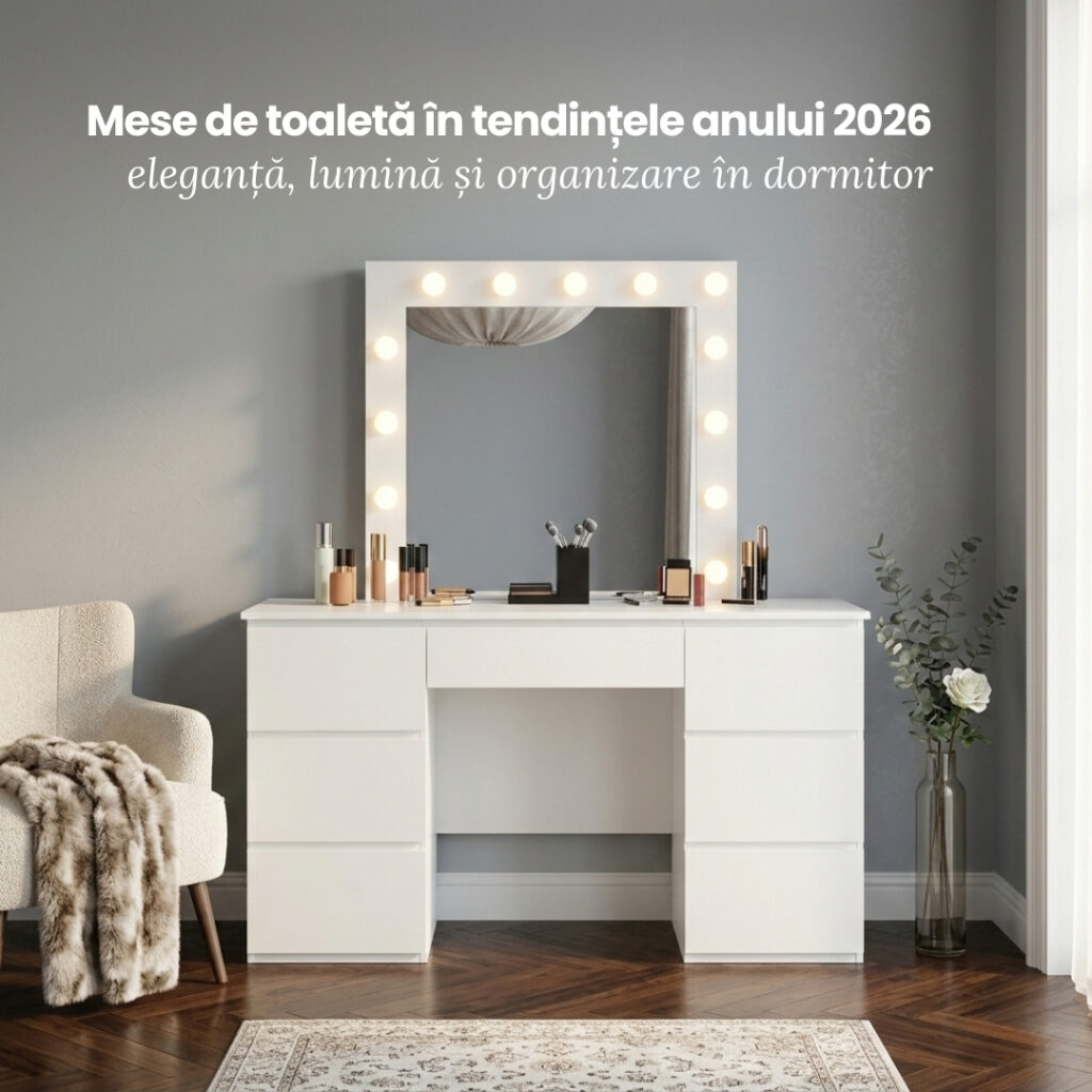 Dormitorul tău ar trebui să fie un refugiu. Și totuși, de multe ori devine un spațiu aglomerat, fără personalitate, în care produsele de machiaj se împrăștie pe comodă, bijuteriile se încurcă între ele, iar lipsa de organizare creează mai mult stres decât confort. Ne dorim eleganță, dar obținem dezordine. Ne dorim un colț al nostru, dar nu știm cum să-l definim. Problema nu este spațiul. Problema este lipsa unei piese centrale care să aducă echilibru și funcționalitate. În 2026, soluția devine clară și rafinată: integrarea unor mese de toaletă bine alese. Nu uita nici de o oglindă poziționată strategic sau de alte sisteme inteligente de depozitare. Nu este doar o tendință de design, ci o schimbare de perspectivă asupra modului în care folosim dormitorul. O masă de toaletă nu mai este un moft decorativ, ci un spațiu personal organizat, care aduce ordine vizuală, lumină și coerență în întreaga încăpere.De ce mesele de toaletă redevin piese centrale în dormitor