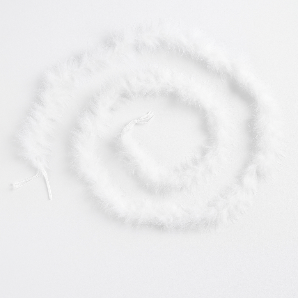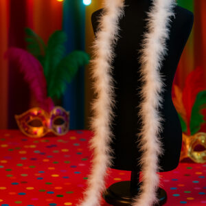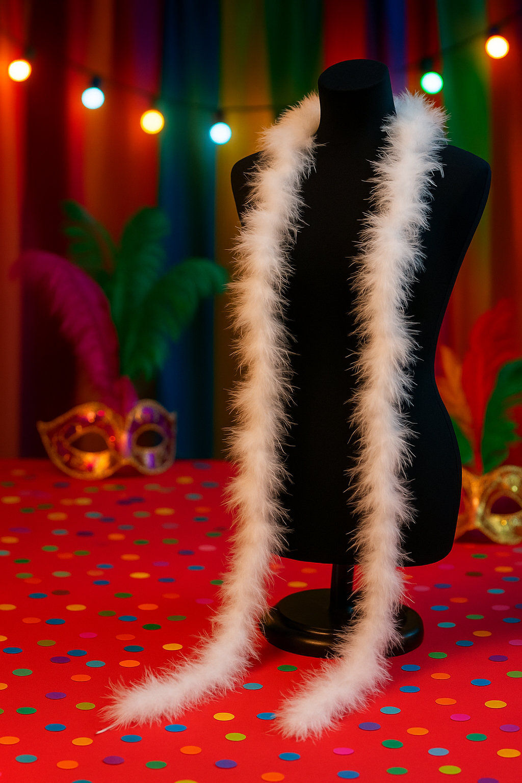 Boa decorativ din pene fine si bumbac, alb, cu lungimea de 2 metri. Un accesoriu elegant si versatil, ideal pentru petreceri, carnavaluri, decoruri festive sau tinute tematice.