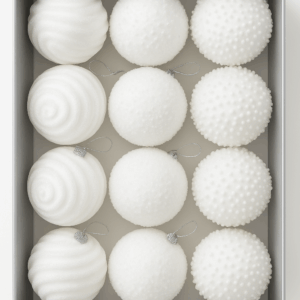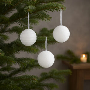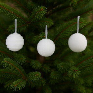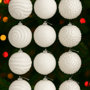 Setul de 12 globuri albe cu sclipici este ideal pentru decorarea bradului de Craciun si pentru crearea unei atmosfere elegante si luminoase. Realizate din polistiren usor, dar rezistent, aceste decoratiuni festive aduc varietate, rafinament si un plus de stralucire ornamentelor de sezon.