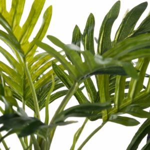 Palmierul artificial cu ghiveci din beton alb este o piesa decorativa compacta, ideala pentru rafturi, birouri sau mese. Aspectul natural al frunzelor este completat de ghiveciul solid din ciment, care adauga stabilitate si un stil modern. O solutie practica pentru decor fara intretinere.