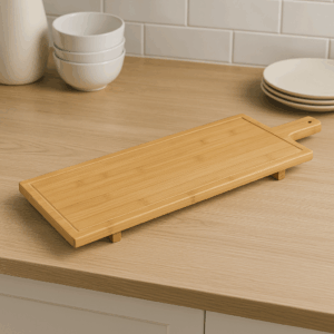 Platoul de servire Atmosphera din bambus natural imbina functionalitatea cu eleganta minimalista. Suprafata neteda si forma alungita il fac ideal pentru servirea aperitivelor, gustarilor sau deserturilor intr-un mod rafinat. Perfect pentru mesele in familie sau evenimente festive.