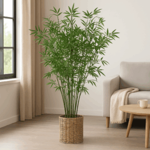 Bambusul artificial Atmosphera este o piesa decorativa eleganta, ideala pentru interior. Cu o inaltime de 150 cm si un ghiveci din material natural, reda autentic textura si forma plantelor reale. Ofera un aspect proaspat si exotic spatiilor de locuit, fara a necesita intretinere.