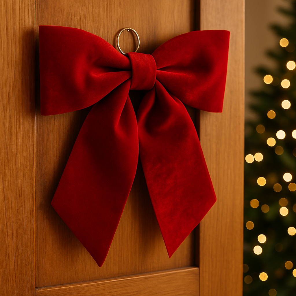 Fundita decorativa XXL din catifea adauga un farmec clasic decorului de Craciun. Cu textura moale, aspect luxuriant si nuanta intensa de rosu, este ideala pentru a decora usi, ferestre, seminee sau brazi de Craciun, oferind un plus de eleganta sarbatorilor.