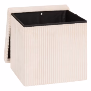Taburetul pliabil Arum de la Atmosphera aduce un plus de luminozitate si rafinament incaperii. Realizat din material tip catifea cu dungi, moale si placut la atingere, ofera confort si functionalitate, fiind ideal pentru depozitare sau sezut suplimentar.
