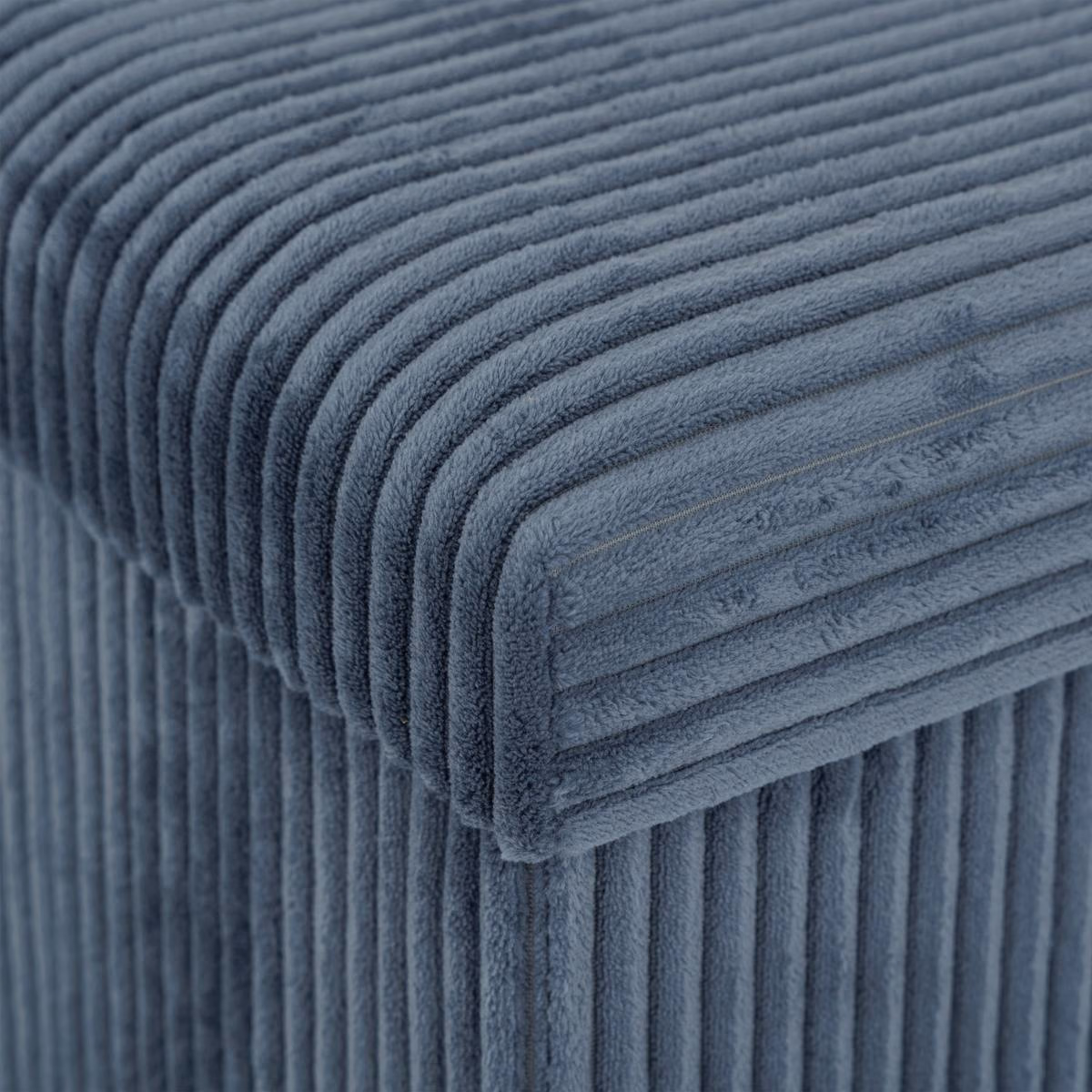 Taburetul dublu pliabil Arum de la Atmosphera imbina confortul cu functionalitatea intr-un design elegant. Realizat din material tip catifea cu dungi, in nuanta albastru inchis, ofera spatiu amplu pentru depozitare si poate fi folosit atat ca sezut suplimentar, cat si ca element decorativ modern.