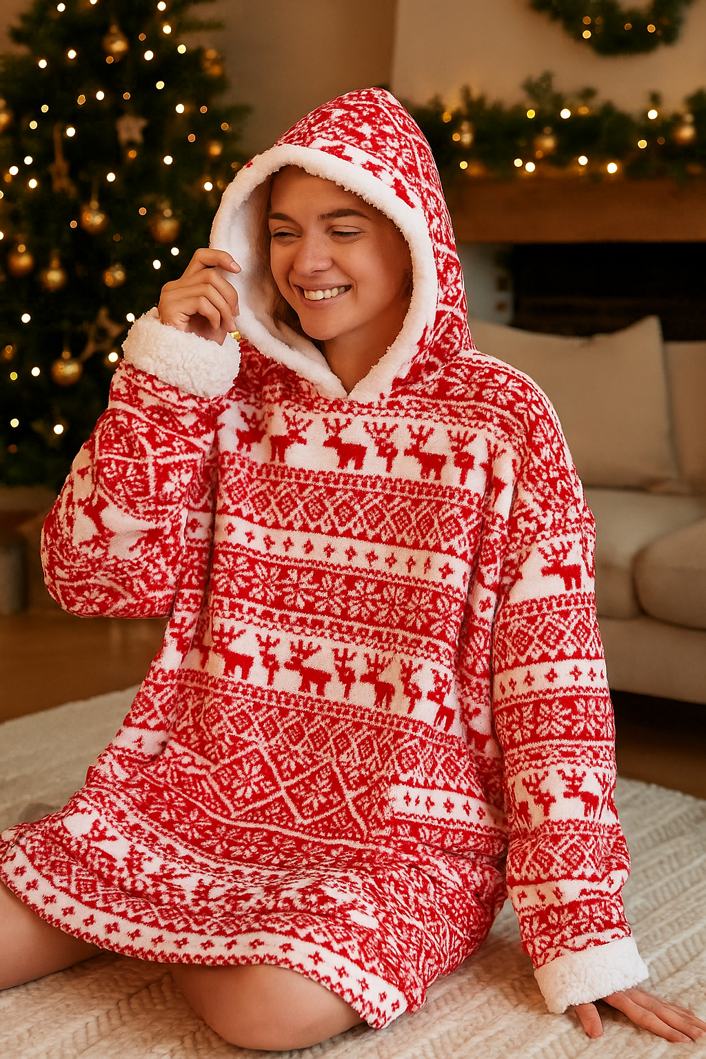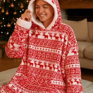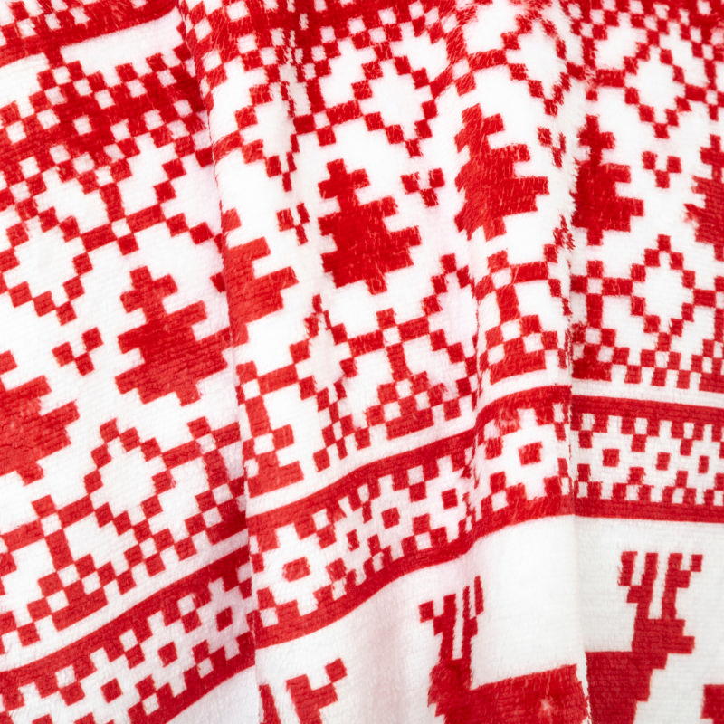 Aceasta patura moale cu design scandinav aduce confort si caldura in zilele reci de iarna. Realizata din poliester placut la atingere, este ideala pentru serile petrecute acasa, oferind un aer festiv si relaxant datorita modelului de Craciun in nuante de rosu intens.