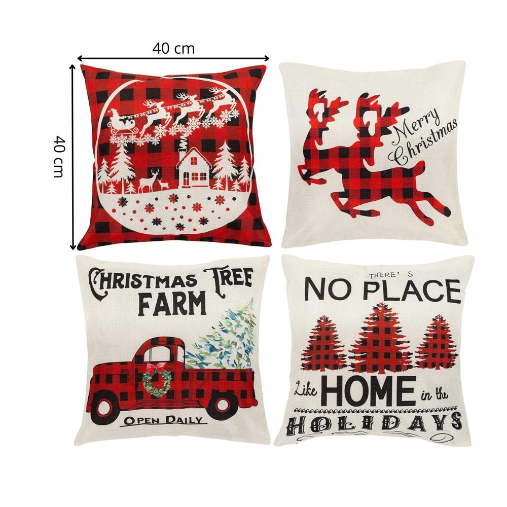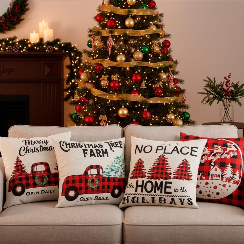 Setul de 4 fete de perna decorative adauga instant spiritul Craciunului in locuinta ta. Cu modele festive si culori vii, aceste huse sunt alegerea ideala pentru a transforma canapeaua sau patul intr-un colt cozy si plin de bucurie.