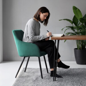 Setul DIAMANTE cu 6 scaune tapitate in velur aduce eleganta si confort in dining, living sau spatii de birou. Tapiteria moale si matlasata ofera un plus de rafinament, iar picioarele metalice negre asigura stabilitate si un aspect modern. Designul versatil permite integrarea usoara atat in interioare contemporane, cat si clasice.
