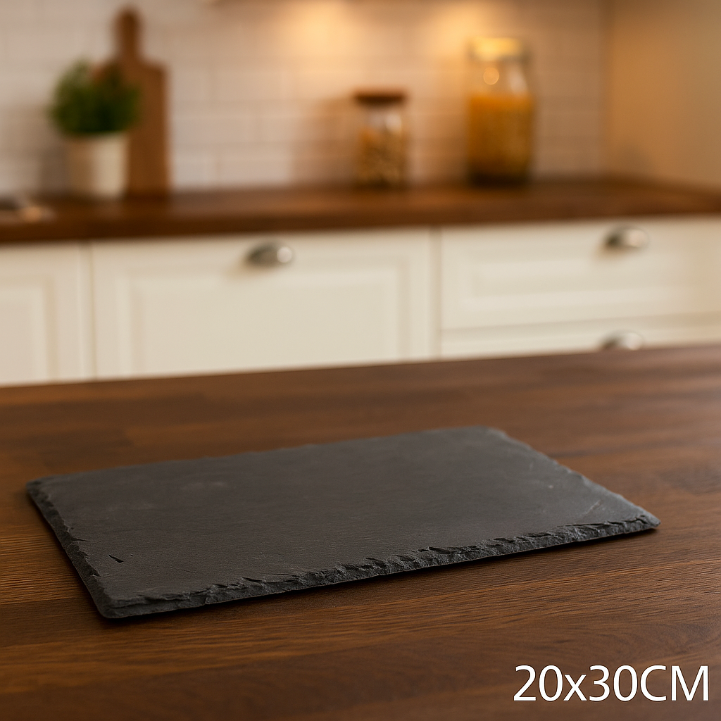 Platou din ardezie Atmosphera, ideal pentru servirea aperitivelor, branzeturilor sau deserturilor. Textura naturala si designul elegant adauga un plus de stil oricarei mese festive sau casual.