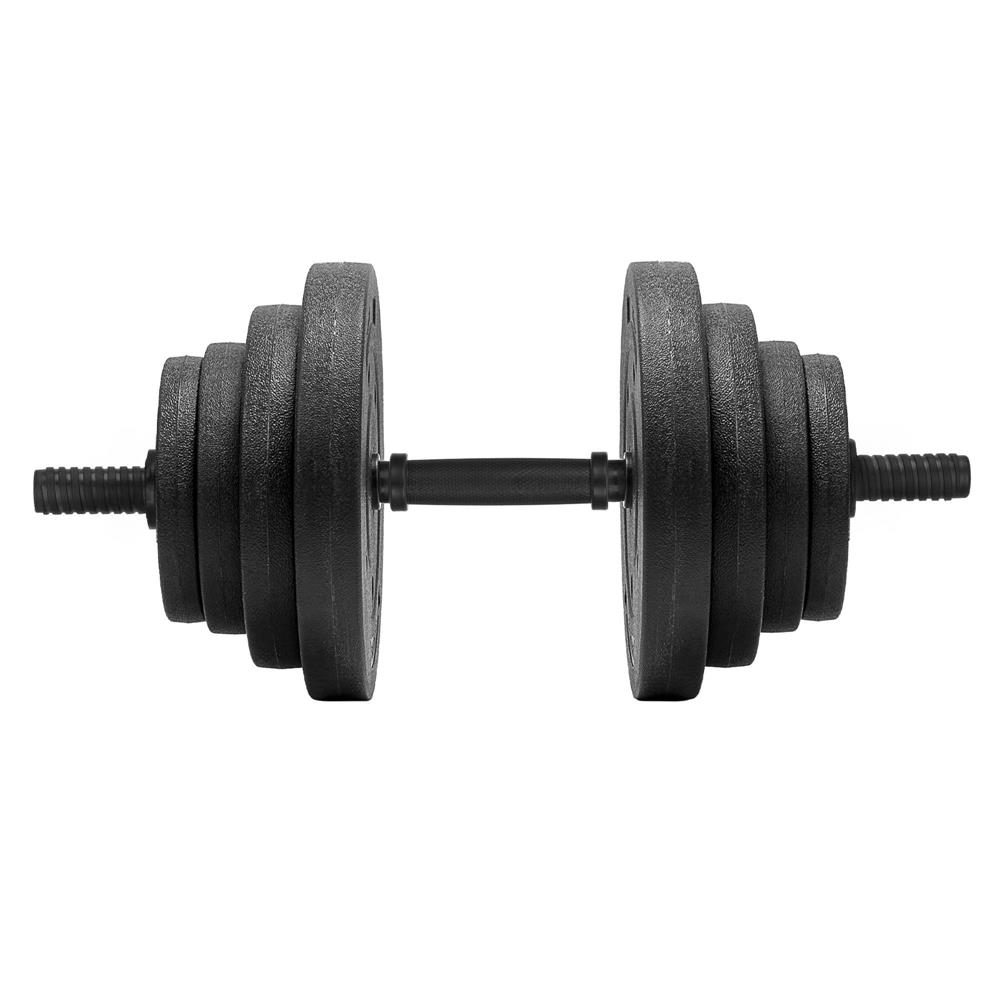Set complet de gantere cu discuri, potrivit pentru antrenamente de forta si tonifiere acasa. Greutatile pot fi combinate usor pentru a adapta intensitatea exercitiilor, iar sistemul de prindere filetata asigura stabilitate in timpul antrenamentului.