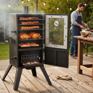 Afumatoarea pentru gradina este ideala pentru prepararea alimentelor cu gust autentic, direct la tine acasa. Permite afumarea carnii, pestelui sau branzeturilor, oferind control asupra temperaturii si un rezultat uniform.
