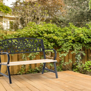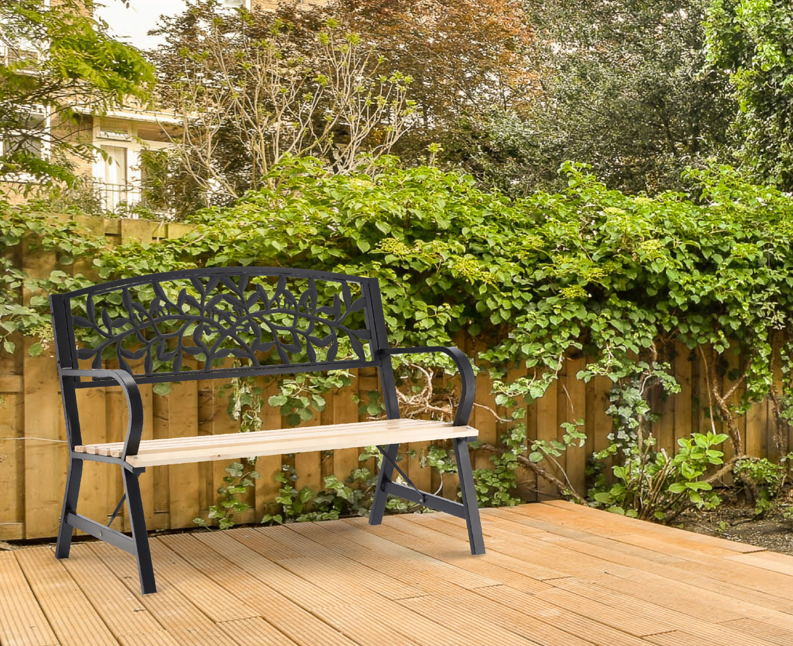 Banca de gradina imbina aspectul natural al lemnului cu rezistenta metalului, oferind un spatiu confortabil pentru relaxare in aer liber. Designul elegant si constructia solida o fac potrivita pentru orice tip de gradina sau terasa.