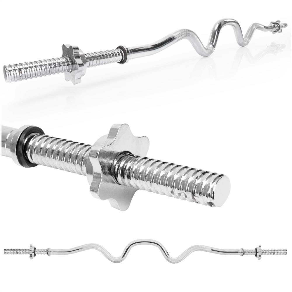 Bara curbata accentuat pentru greutati, realizata din otel cromat rezistent, destinata exercitiilor de biceps si triceps. Forma pronuntata reduce solicitarea incheieturilor si permite o executie mai confortabila a miscarilor. Compatibila cu discuri standard de 25 mm.