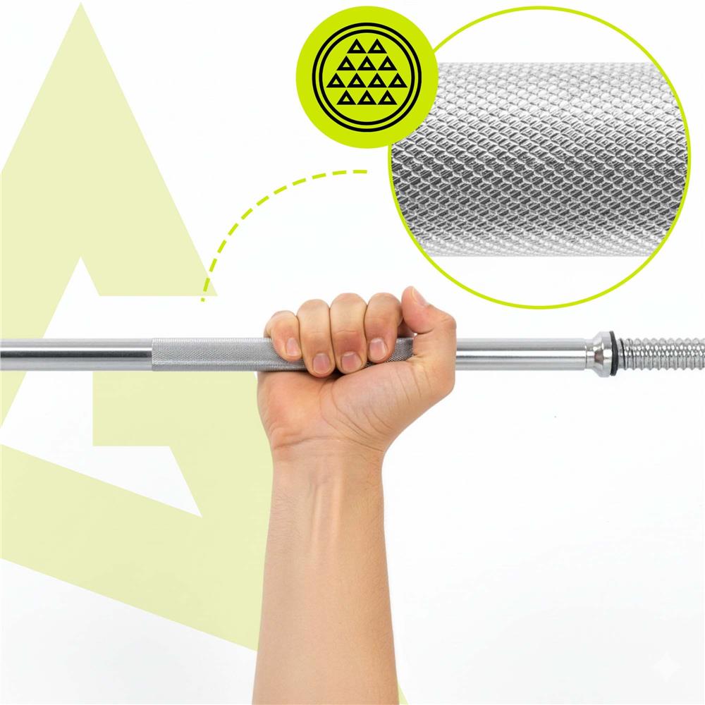 Bara pentru greutati realizata din otel cromat rezistent, conceputa pentru antrenamente de forta. Asigura stabilitate buna, prindere sigura si compatibilitate cu discuri standard de 25 mm. Potrivita pentru utilizare acasa sau in sala.