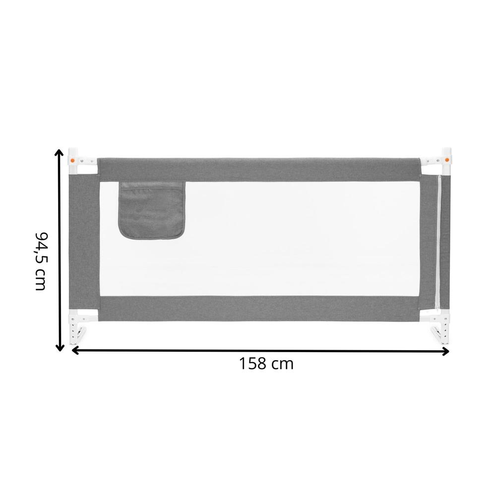 Bariera de siguranta pentru pat, protectie copii, 158 cm, reglabila pe inaltime 75-95 cm, gri