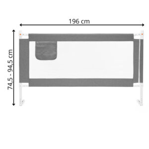 Bariera de siguranta pentru pat, protectie copii, 196 cm, reglabila pe inaltime 75-95 cm, gri
