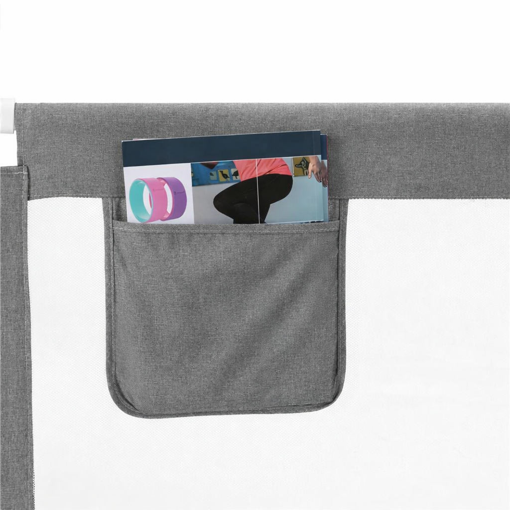 Bariera de siguranta pentru pat, conceputa pentru a preveni caderea copiilor in timpul somnului. Structura solida, cu inaltime reglabila si material textil rezistent, ofera protectie eficienta si confort in utilizarea zilnica.