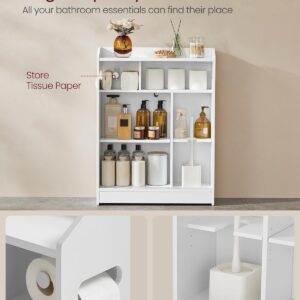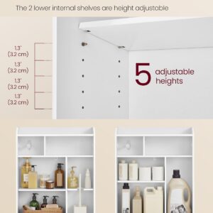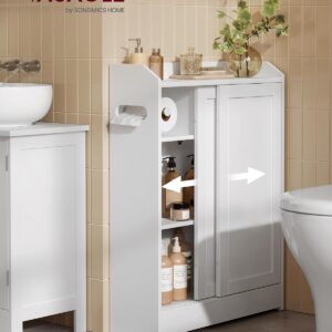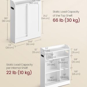 VASAGLE Dulap baie ingust, cu suport hartie igienica si compartiment perie WC, usi glisante, rafturi reglabile, 20x60x80 cm, alb