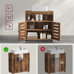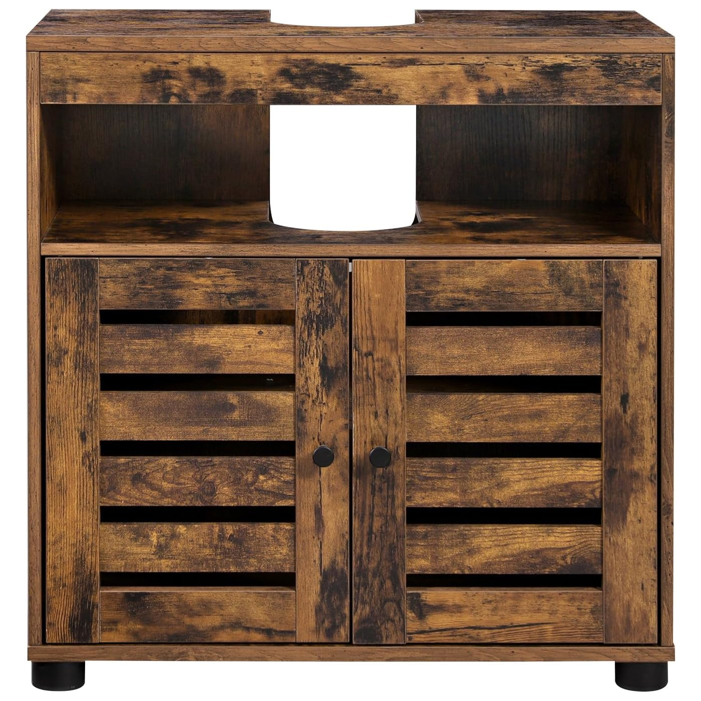 VASAGLE Dulap baie lavoar cu 2 usi tip jaluzea, raft reglabil, 60x30x63 cm, maro rustic VASAGLE Dulap baie lavoar cu 2 usi tip jaluzea, raft reglabil, 60x30x63 cm, maro rustic