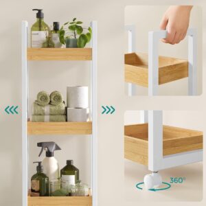 Optimizeaza spatiile inguste din baie sau bucatarie cu acest carucior compact si practic. Designul mobil si politele reglabile iti ofera flexibilitate maxima pentru organizarea obiectelor zilnice.