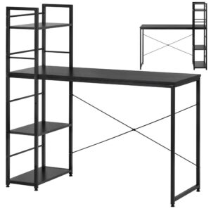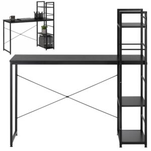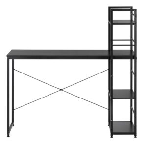 Birou modern cu blat MDF si rafturi laterale integrate, prevazut cu picioare reglabile si cadru metalic stabil. Politele pot fi montate dupa preferinte, oferind flexibilitate si spatiu generos pentru depozitare.
