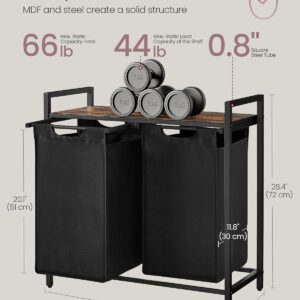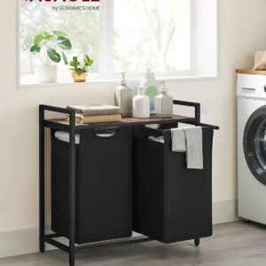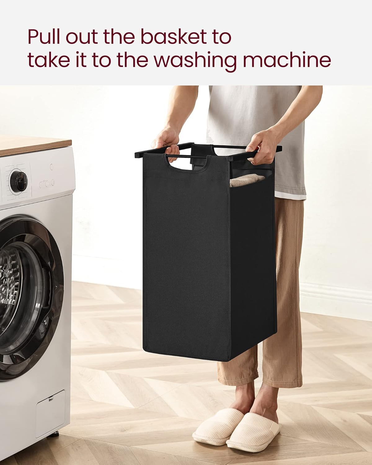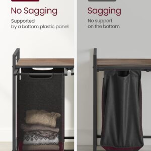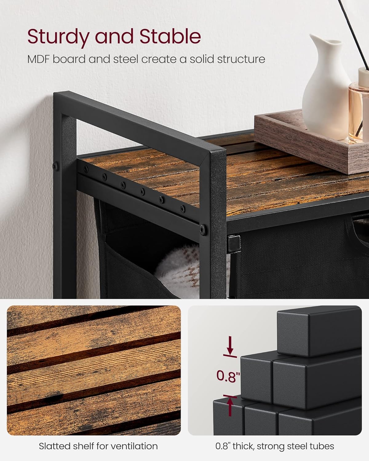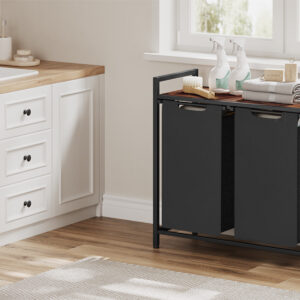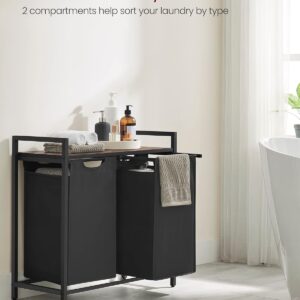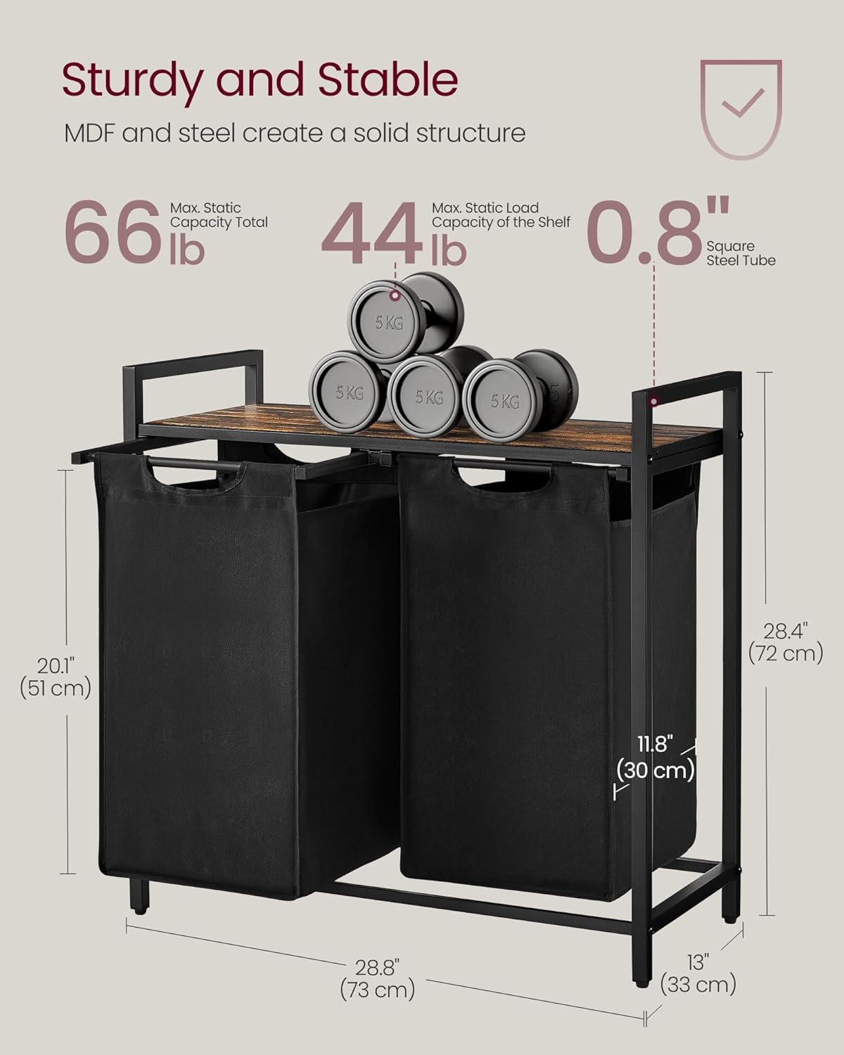 Cosul de rufe VASAGLE cu 2 compartimente permite sortarea eficienta a hainelor si ofera un spatiu suplimentar datorita raftului superior. Designul robust si materialele rezistente il fac potrivit pentru utilizare zilnica in baie, dormitor sau spalatorie.