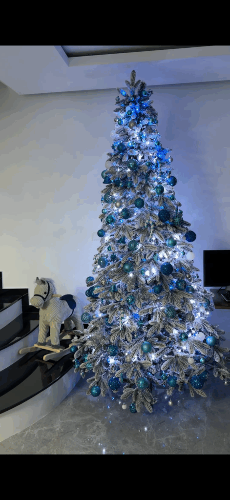 Cu bradul Christmas Deluxe by Sersimo® – un element inseparabil al Craciunului – veti petrece aceasta perioada magica de iarna intr-o aura de bucurie si caldura. Ganditi-va doar cat de frumos vor arata decoratiunile – stralucitoare, presarate cu sclipici, incalzind interiorul. Chiar si oamenii care nu impartasesc entuziasmul de Craciun recunosc ca un brad de Craciun impodobit frumos creeaza o atmosfera aparte. Cel mai mare avantaj al bradului nostru de Craciun este numarul mare de ramuri dens aranjate. Datorita densitatii si elegantei sale captivante, nu necesita prezenta a numeroase decoratiuni, fiind cu adevarat un decor grozav al oricarui interior! Etajul cel mai de jos al pomului de Craciun este la inaltimea potrivita, astfel incat sa puteti pune cu usurinta cadourile de Craciun sub el.
