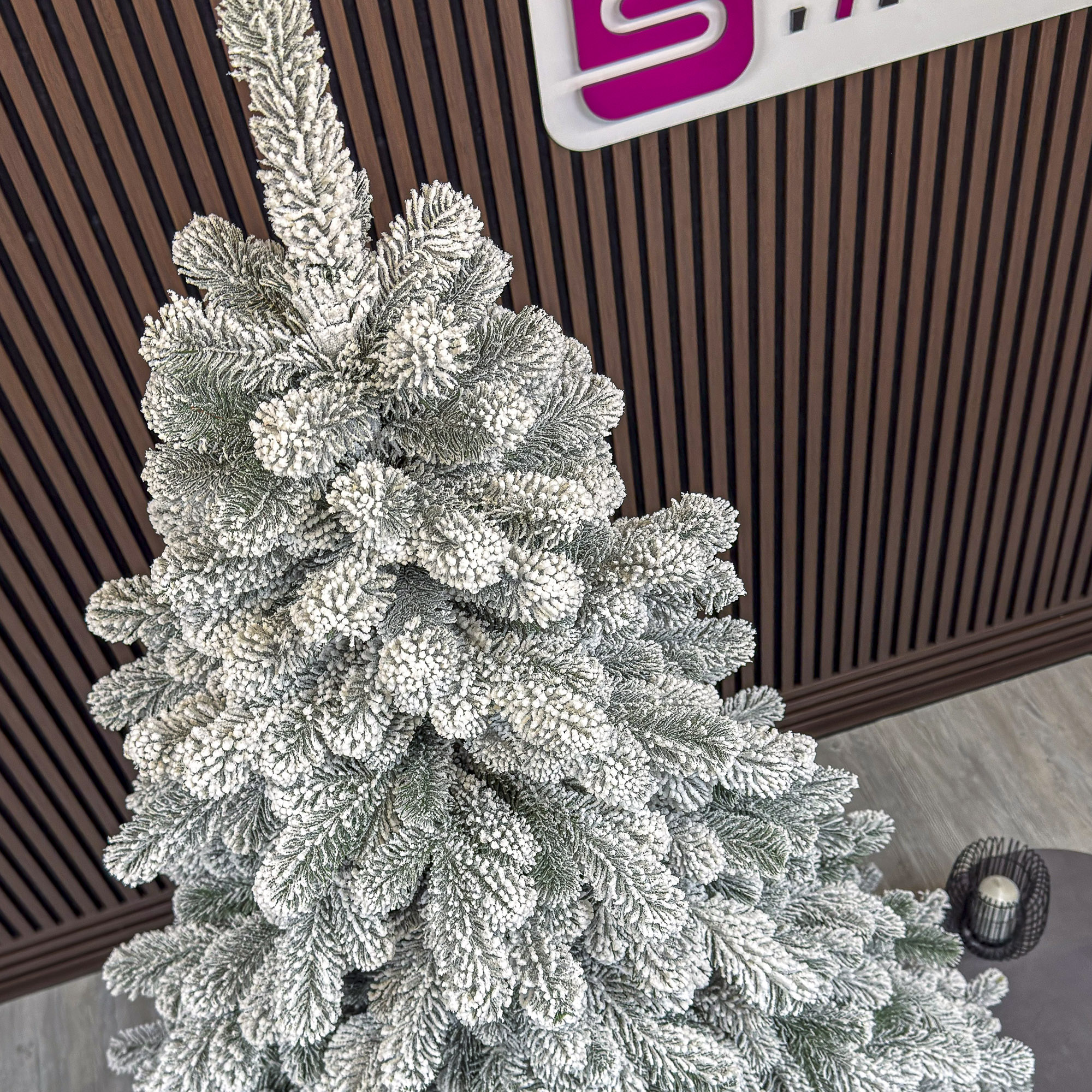Am cumpărat acest brad pentru că mi am dorit foarte mult un brad nins.Sincer este mai frumos ca în poze.Este exact ce mi am dorit.Aspectul bradului depinde de cum așezați crengile.Diametrul în partea cea mai largă este mai mică decât în descriere 135,140cm.Livrarea a fost rapidă.Mulțumesc Sersimo.