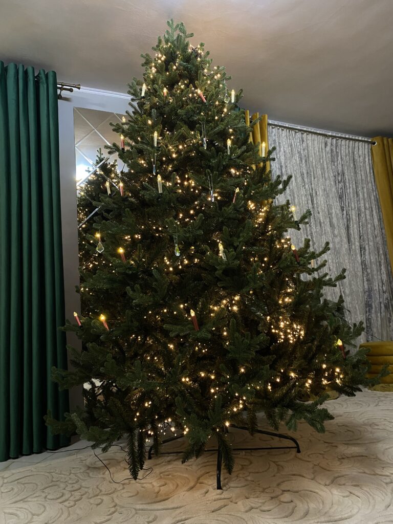 Cu bradul Christmas Deluxe by Sersimo® – un element inseparabil al Craciunului – veti petrece aceasta perioada magica de iarna intr-o aura de bucurie si caldura. Ganditi-va doar cat de frumos vor arata decoratiunile – stralucitoare, presarate cu sclipici, incalzind interiorul. Chiar si oamenii care nu impartasesc entuziasmul de Craciun recunosc ca un brad de Craciun impodobit frumos creeaza o atmosfera aparte. Cel mai mare avantaj al bradului nostru de Craciun este numarul mare de ramuri dens aranjate. Datorita densitatii si elegantei sale captivante, nu necesita prezenta a numeroase decoratiuni, fiind cu adevarat un decor grozav al oricarui interior! Etajul cel mai de jos al pomului de Craciun este la inaltimea potrivita, astfel incat sa puteti pune cu usurinta cadourile de Craciun sub el.