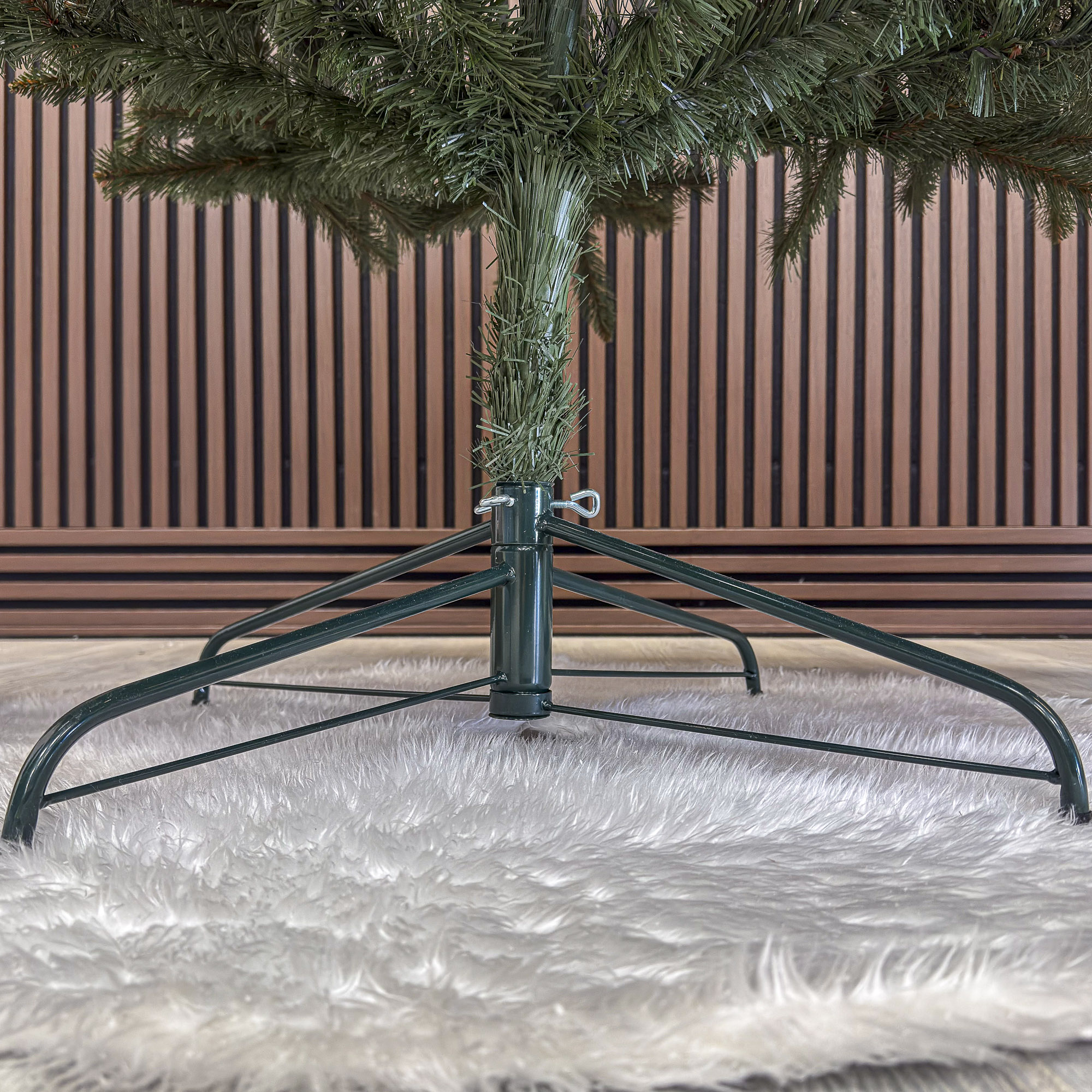 Dispune de ramuri bogate de culoare verde inchis, foarte apropiat de culoarea naturala a brazilor. Ramurile ramificate permit modelarea si impodobirea acestuia dupa preferintele fiecaruia. Pomii pot fi rapid ansamblati si dezansamblati, sunt usor de intretinut si sigur va vor face casa sa radieze de frumusete si a spirit de Craciun. Inaltimea totala a bradului, impreuna cu suportul este de 240 cm. Diametrul aproximativ este de 150cm (dar poate diferi cu plus/minus 10cm in functie de modul in care sunt arantaje ramurile)