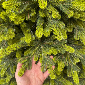 Crengile pot fi indoite cu usurinta in diferite directii pentru a modela diferitele ramuri ale pomului si a le da forme diferite. Crengutele individuale au finaluri realiste si variate, iar niciuna nu este taiata intr-un mod artificial si inestetic. Culoarea lor intr-un mod extrem de realist imita culoarea reala a coniferelor si nu se estompeaza in timp. Sarma ascunsa cu grija nu se vede prin ace si, in acelasi timp, este suficient de groasa si rezistenta pentru ca bradul sa va serveasca ani de zile! Ace din folie PVC, puternice si durabile, sunt in acelasi timp extrem de placute la atingere. Deoarece bradul de Craciun – spre deosebire de copacii adevarati – nu ii pierde, nu va fi nevoie sa aspirati camera in mod regulat. Mai mult decat atat, acele sunt distribuite uniform pe toata lungimea ramurii, garantand astfel un efect vizual de densitate, fara goluri.