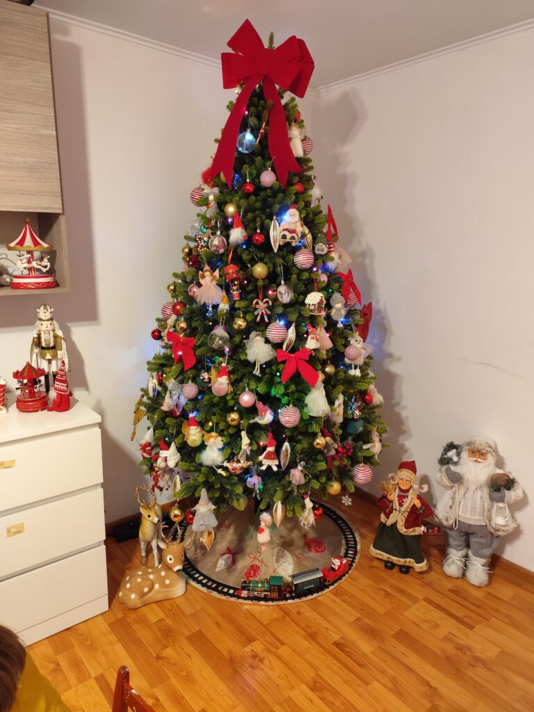 Cu bradul Christmas Deluxe by Sersimo® – un element inseparabil al Craciunului – veti petrece aceasta perioada magica de iarna intr-o aura de bucurie si caldura. Ganditi-va doar cat de frumos vor arata decoratiunile – stralucitoare, presarate cu sclipici, incalzind interiorul. Chiar si oamenii care nu impartasesc entuziasmul de Craciun recunosc ca un brad de Craciun impodobit frumos creeaza o atmosfera aparte. Cel mai mare avantaj al bradului nostru de Craciun este numarul mare de ramuri dens aranjate. Datorita densitatii si elegantei sale captivante, nu necesita prezenta a numeroase decoratiuni, fiind cu adevarat un decor grozav al oricarui interior! Etajul cel mai de jos al pomului de Craciun este la inaltimea potrivita, astfel incat sa puteti pune cu usurinta cadourile de Craciun sub el.
