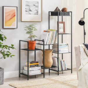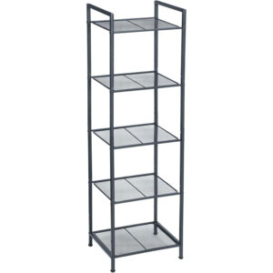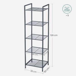 Etajera SONGMICS cu 5 niveluri ofera spatiu generos pentru organizarea obiectelor in baie, bucatarie, balcon sau living. Structura metalica solida si rafturile ajustabile permit depozitarea diversificata, iar designul industrial in nuanta neagra aduce un plus de stil oricarui interior.