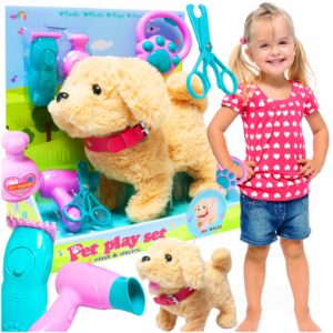 Catelul interactiv este o jucarie ideala pentru cei mici, fiind moale, prietenos si usor de indragit. Dupa activare, catelul merge, latra, misca din coada si reda melodii vesele. Textura pufoasa il face perfect pentru imbratisat, iar accesoriile incluse incurajeaza jocul de rol si ingrijirea animalutelor.