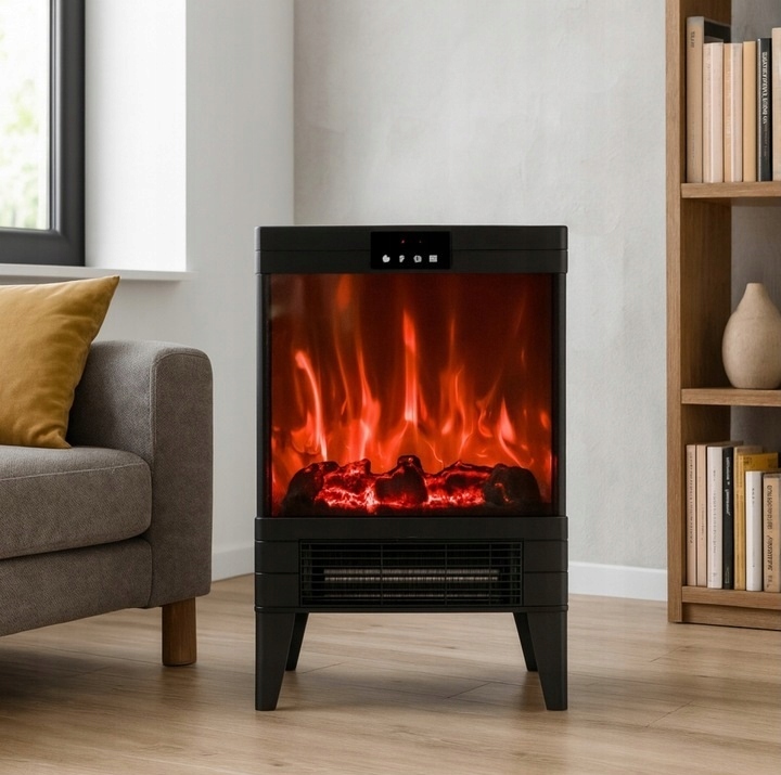 Semineul electric de 2000W combina designul modern cu incalzirea eficienta. Efectul de flacara creeaza o atmosfera calda si relaxanta, fara fum si fara intretinere, iar termostatul digital permite setarea temperaturii dorite cu usurinta.
