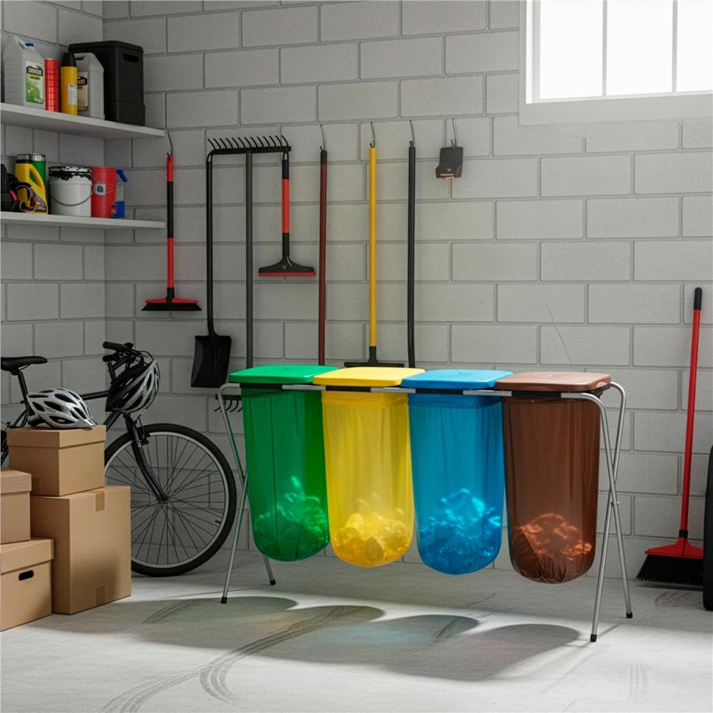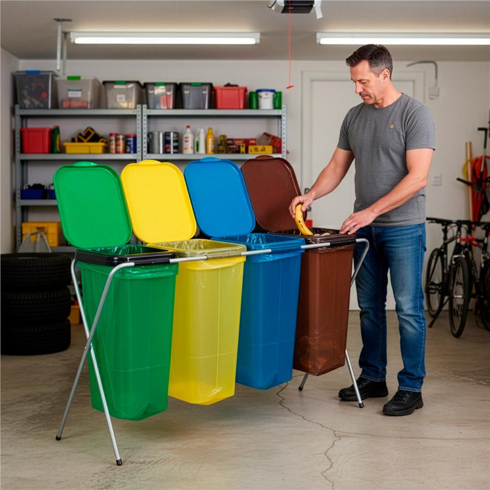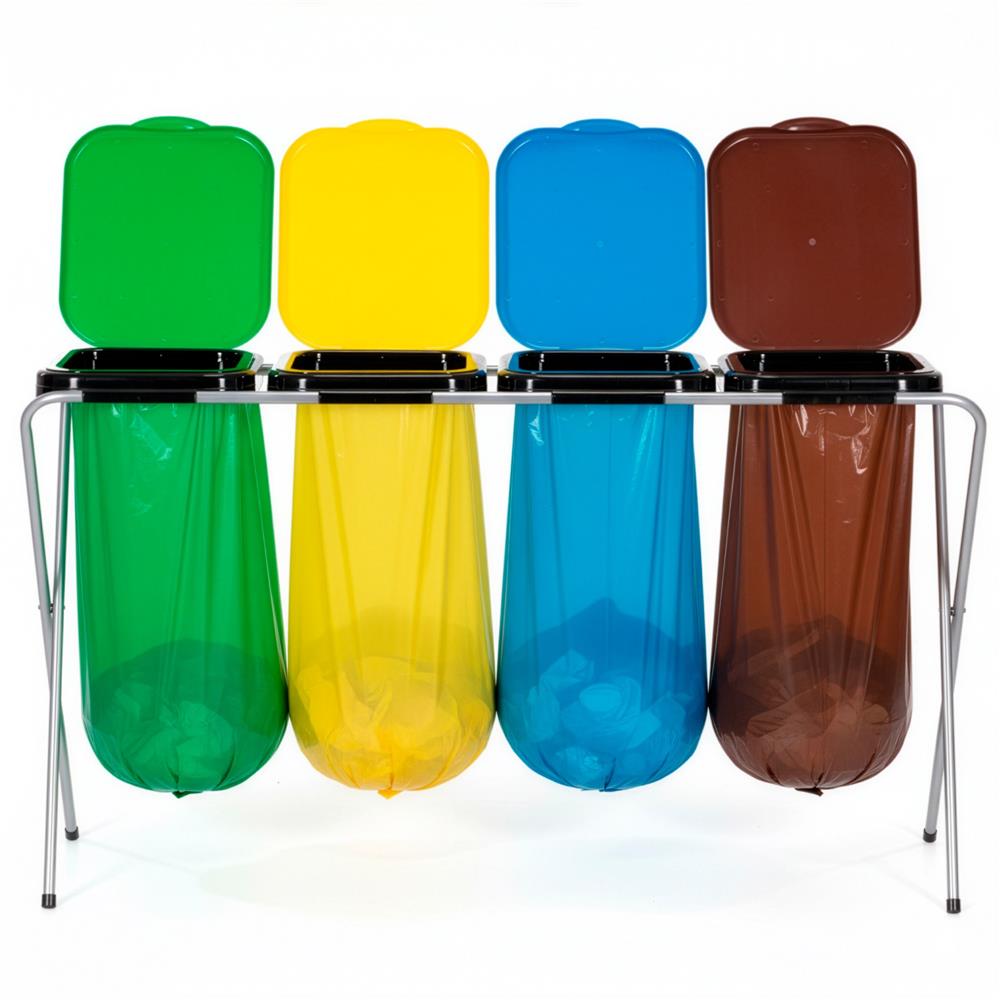 Cos de gunoi cu 4 compartimente, proiectat pentru colectarea selectiva eficienta a deseurilor. Structura metalica este stabila si usoara, iar capacele din PP sunt prevazute cu clapeta interioara pentru fixarea sacilor. Ideal pentru bucatarie, spatii tehnice sau zone utilitare.