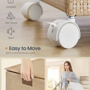 SONGMICS HOME Cos rufe de 140 L ofera spatiu generos si organizare eficienta pentru intreaga familie. Cele 3 compartimente permit sortarea usoara a hainelor, iar rotile integrate asigura deplasare rapida in baie sau dormitor. Designul cu aspect de ratan adauga un plus de eleganta si se potriveste perfect in interioare moderne sau stil country.