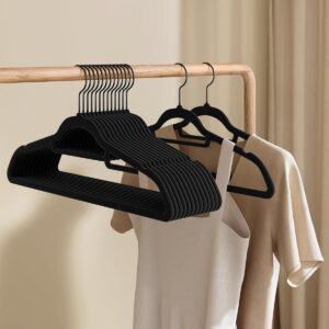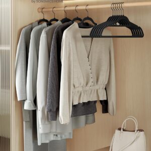 SONGMICS Set de 50 de umerase pentru haine, anti-alunecare cu catifea, bara de cravata si carlig pivotant, 43,5 cm, negru