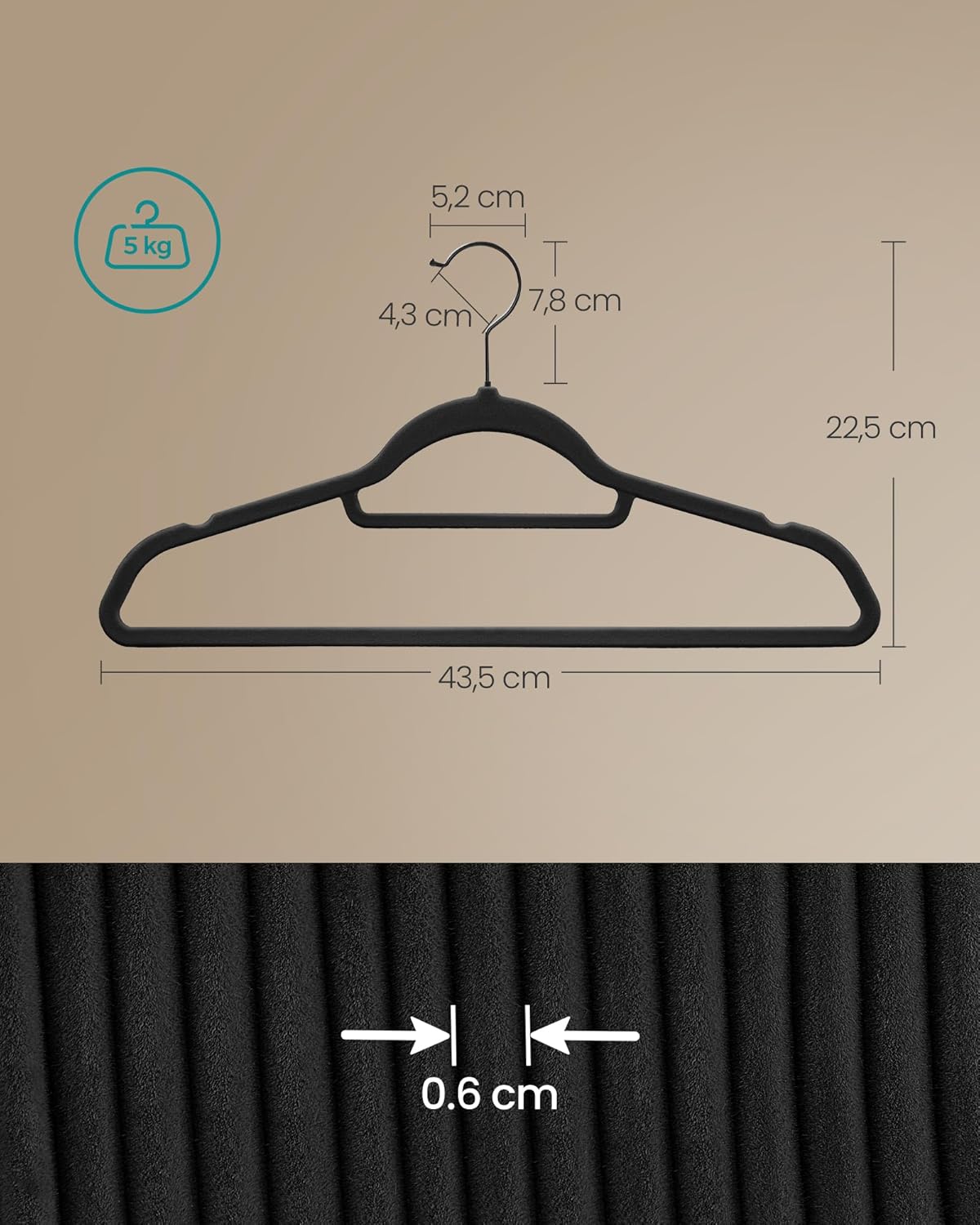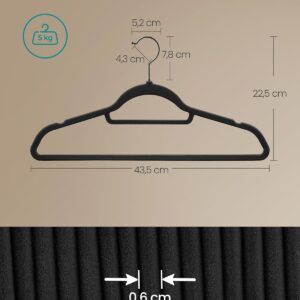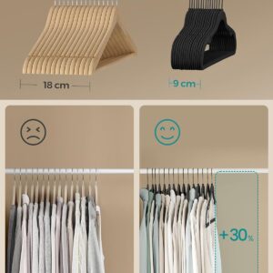 SONGMICS Set de 50 de umerase pentru haine, anti-alunecare cu catifea, bara de cravata si carlig pivotant, 43,5 cm, negru SONGMICS Set de 50 de umerase pentru haine, anti-alunecare cu catifea, bara de cravata si carlig pivotant, 43,5 cm, negru