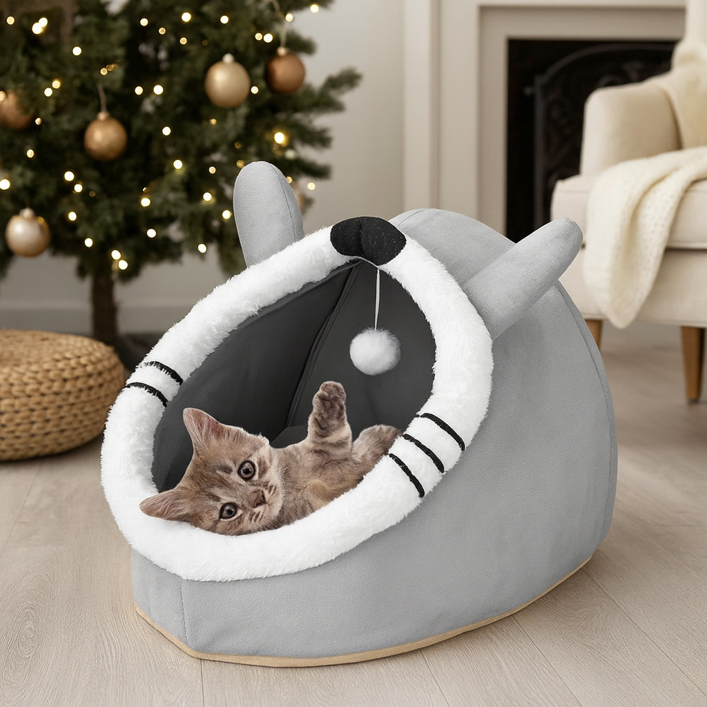 Culcus confortabil pentru animale de companie, realizat din poliester moale si placut la atingere. Include o perna detasabila, usor de scos si de curatat. Designul modern in nuante neutre se potriveste in orice interior, iar forma stabila ofera confort si siguranta pentru pisici sau caini de talie mica.