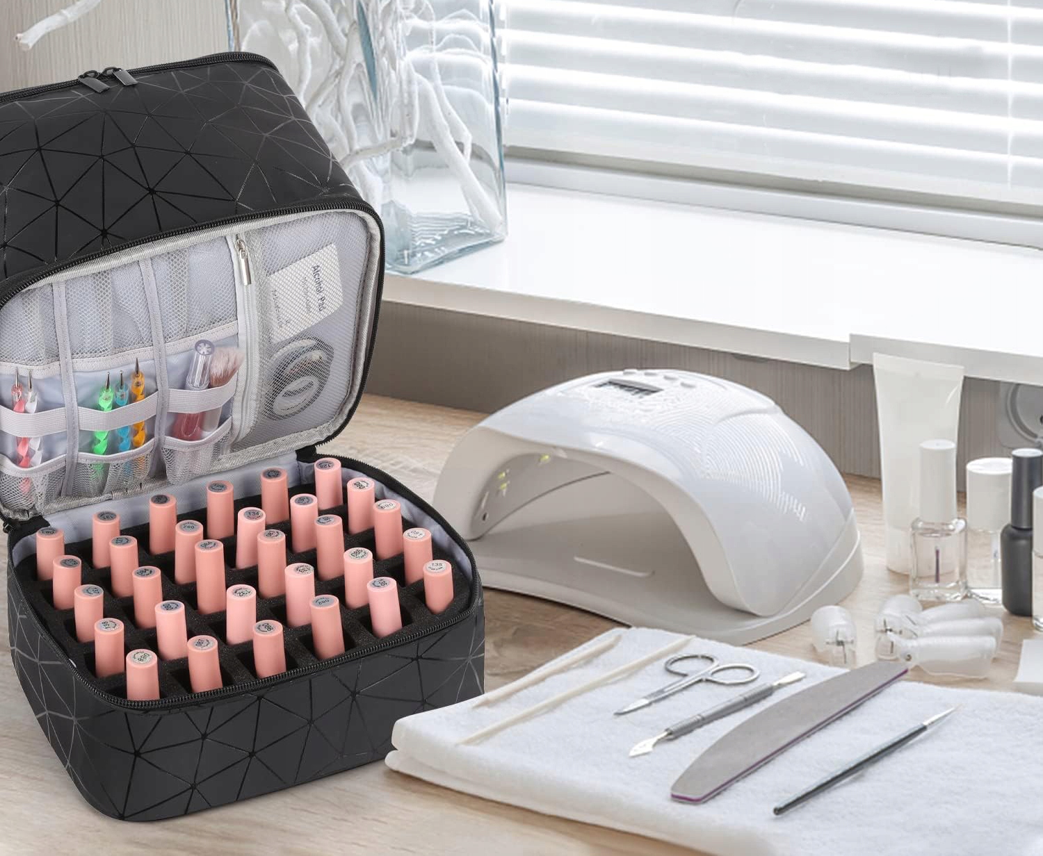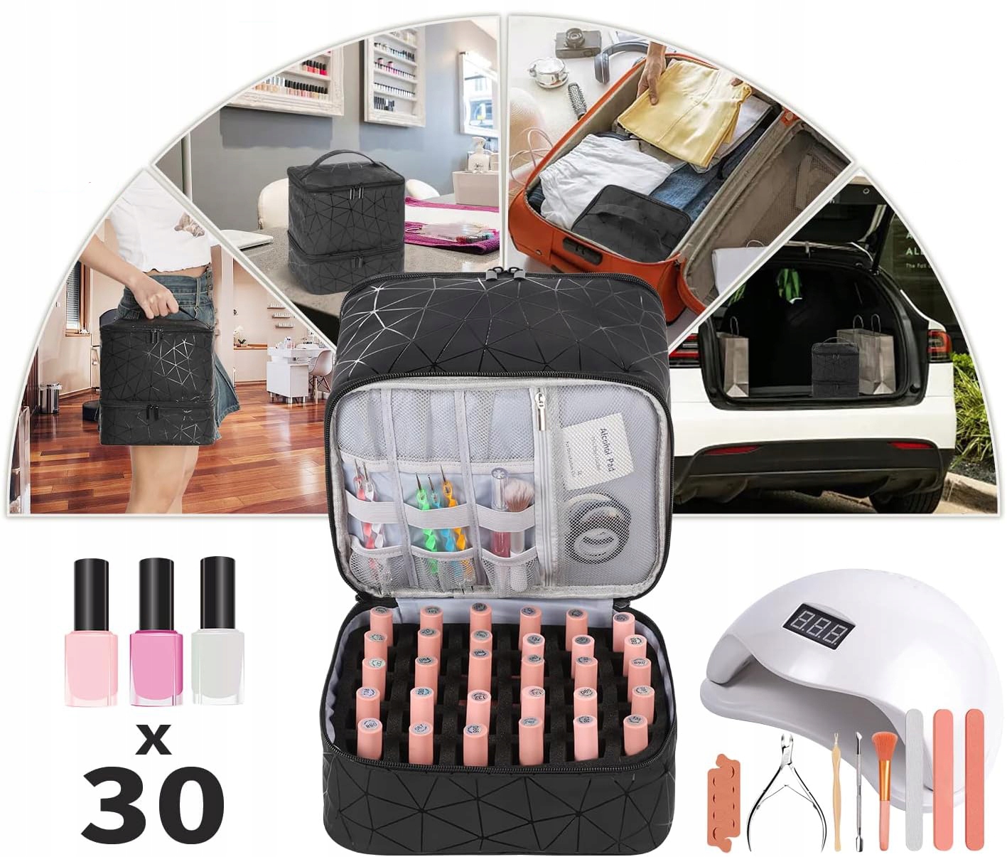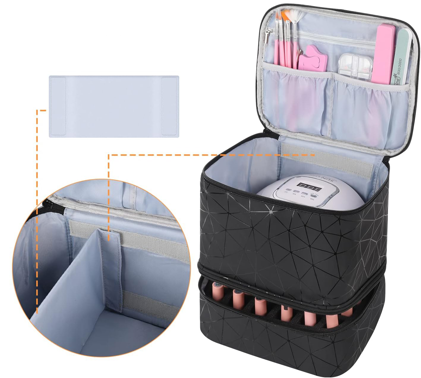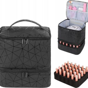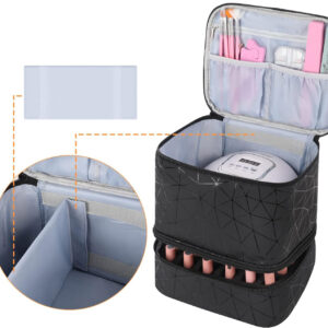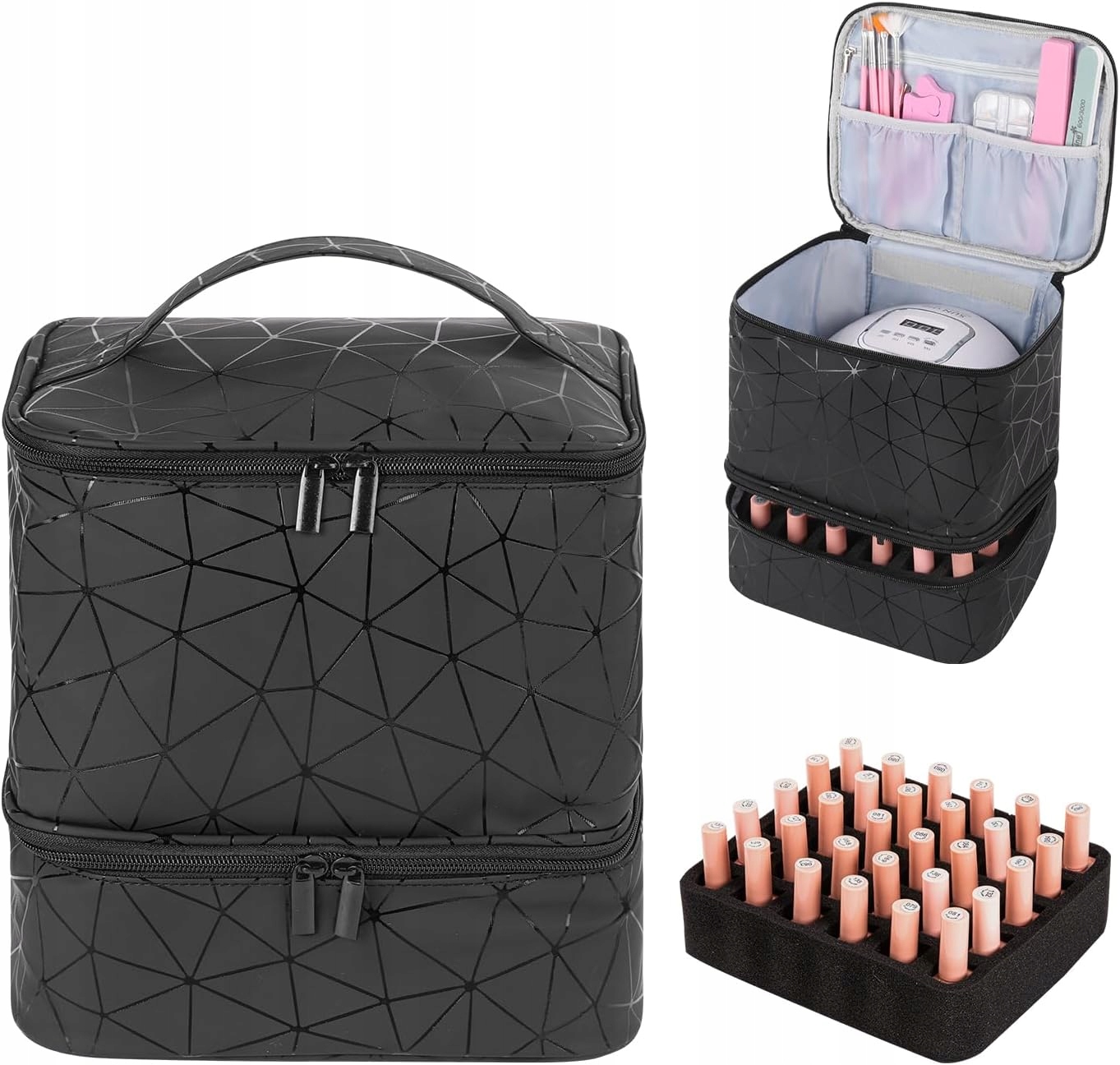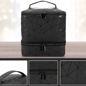 Organizator pentru cosmetice, practic cu doua compartimente, buzunare multiple si grila din burete pentru depozitarea in siguranta a produselor cosmetice si accesoriilor.