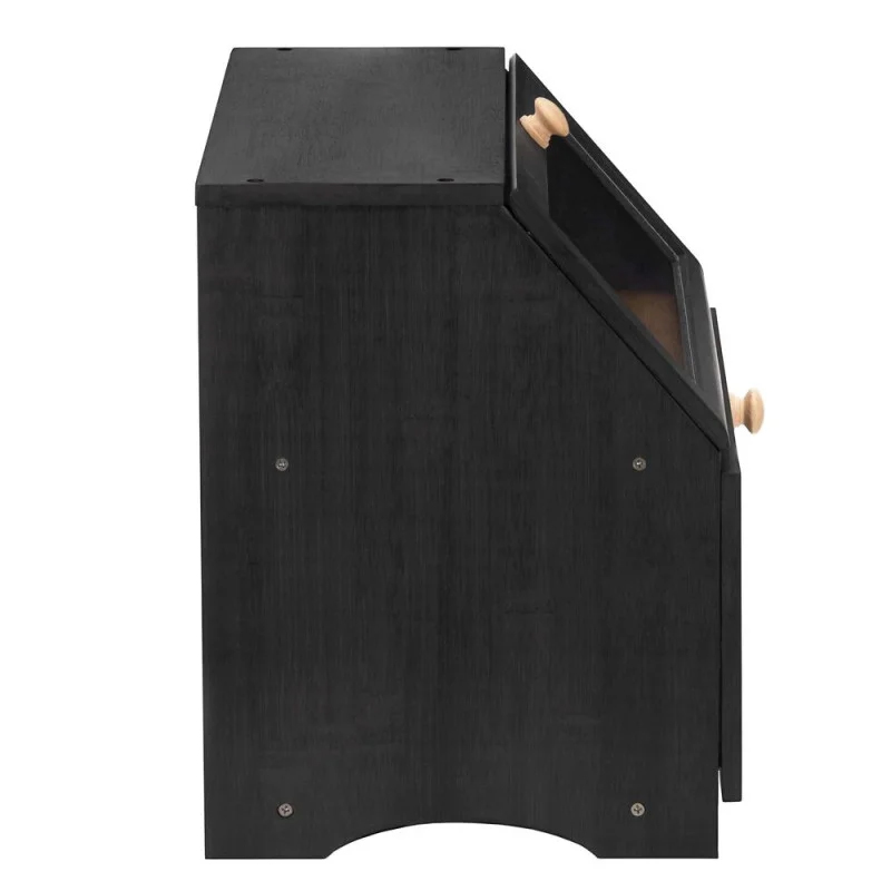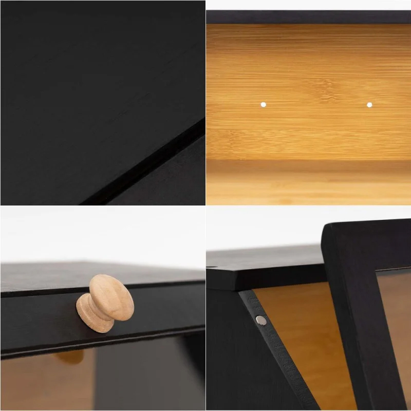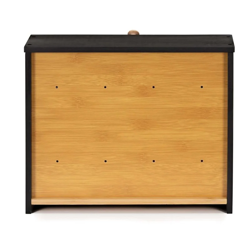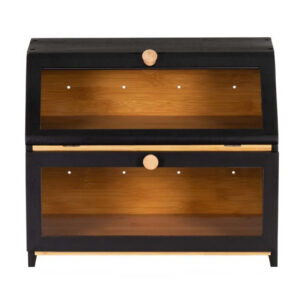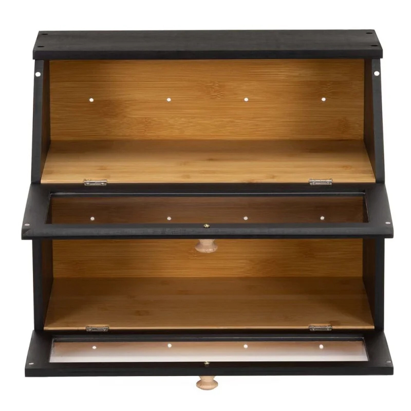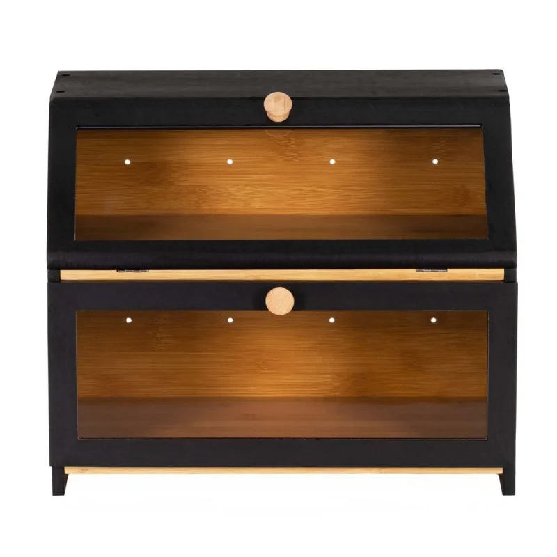 Cutie pentru paine cu 2 niveluri din bambus, cu ferestre transparente si inchidere magnetica, 39x25x32 cm, negru