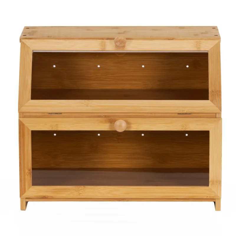 Cutie pentru paine cu 2 niveluri din bambus, cu ferestre transparente si inchidere magnetica, 39x25x32 cm, natur