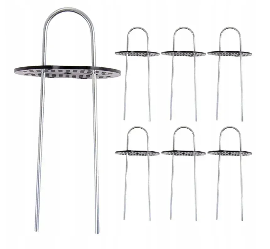 Setul de 6 pini pentru ancorarea agrotextilului este ideal pentru fixarea sigura a tesaturilor agricole, agrotextilului sau materialelor geocompozite direct pe sol. Sunt eficienti in special in conditii de vant, prevenind deplasarea sau ridicarea materialului si asigurand o fixare stabila si durabila. Constructia din metal rezistent, combinata cu elemente din plastic, ofera o utilizare indelungata in exterior.