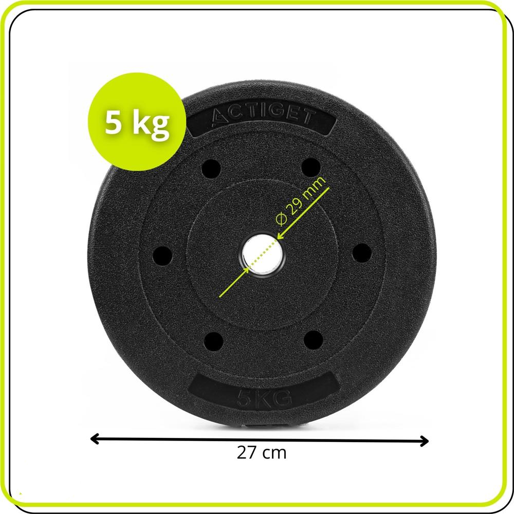Disc greutate haltera, 5 kg, umplutura bitumica, invelist PP, 29 mm, negru Disc greutate haltera, 5 kg, umplutura bitumica, invelist PP, 29 mm, negru