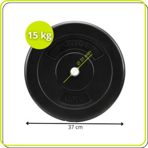 Disc greutate pentru haltera, potrivit pentru antrenamente de forta acasa sau la sala. Prevazut cu acoperire rezistenta din PP si umplere bitumica, ofera durabilitate si protectie impotriva deteriorarii pardoselii. Compatibil cu bare de 31 mm.