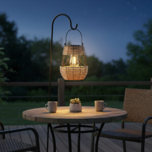 Felinarul solar metalic este o decoratiune eleganta pentru gradina, terasa sau balcon. Se incarca automat pe timpul zilei cu ajutorul panoului solar integrat, iar seara ofera o lumina ambientala placuta. Designul modern in combinatie de culori negru si bej se potriveste perfect in amenajari contemporane sau rustice.