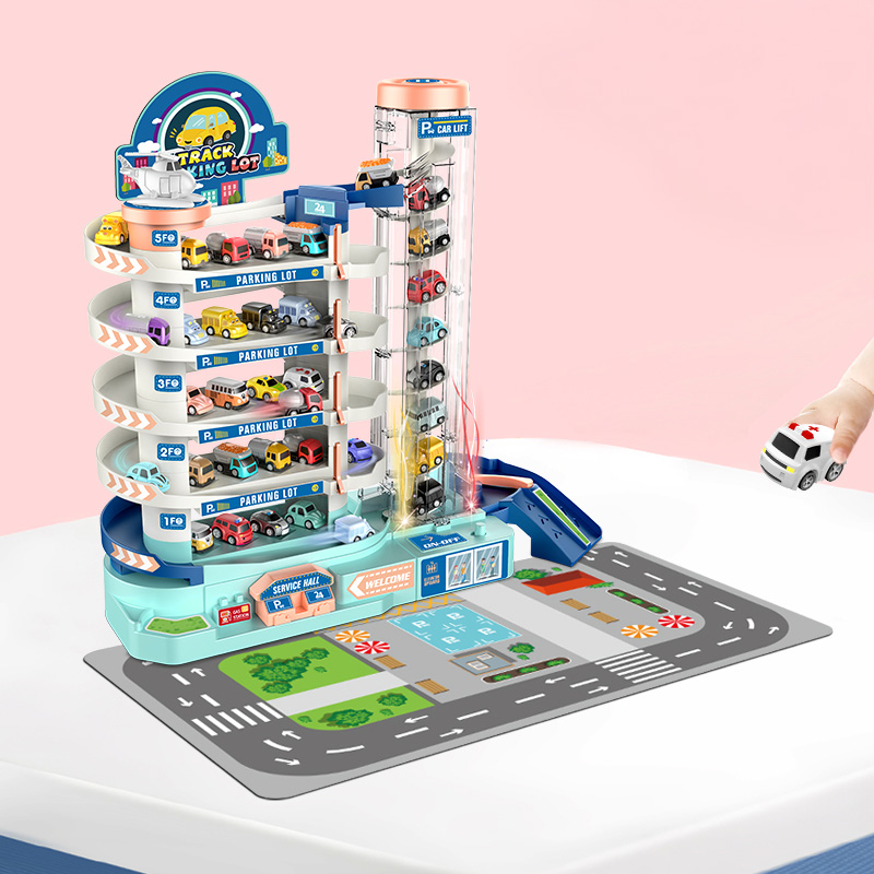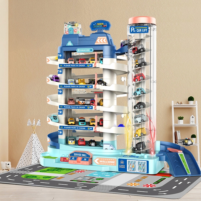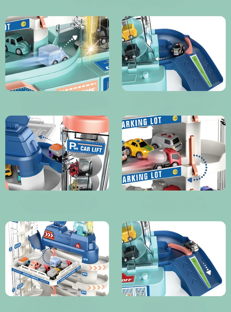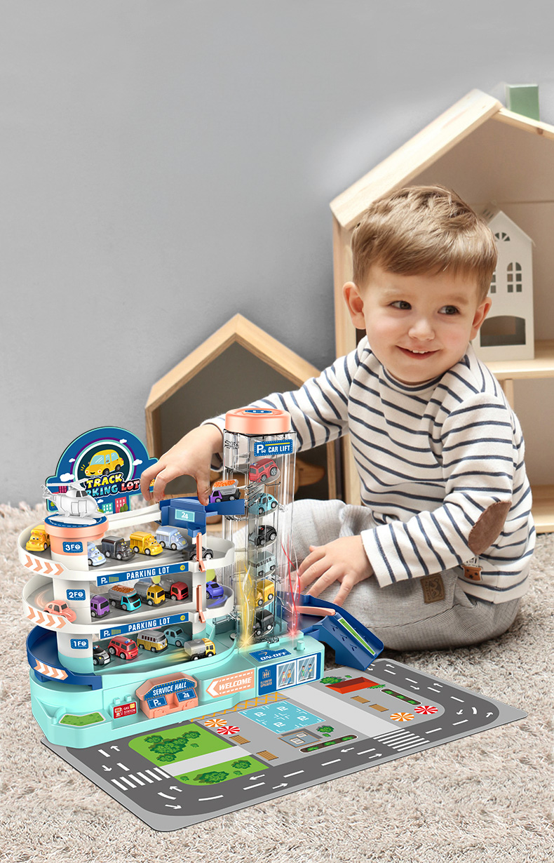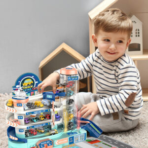 Garajul auto pentru copii este un set complet cu mai multe nivele, lift electric sau manual si piste pentru coborare. Include masini, stickere si un covoras rutier care transforma joaca intr-o adevarata lume urbana. Copiii pot crea scenarii, pot parca vehiculele, pot folosi liftul si se pot juca ore intregi.