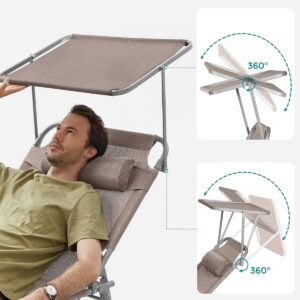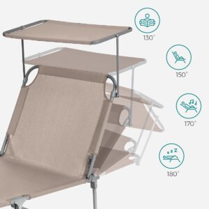 SONGMICS Sezlong pliabil, cu parasolar si tetiera, spatar reglabil in 4 pozitii, maxim 150kg, 200x71x38 cm, taupe