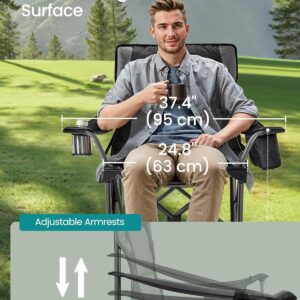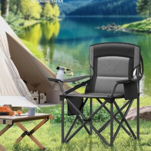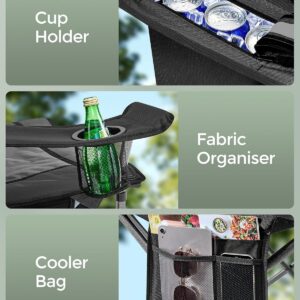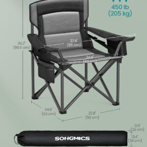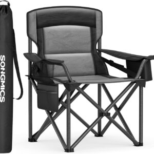 SONGMICS Scaun pliabil camping premium cu spatar inalt si sezut buretat, suport bauturi si buzunar termo, 200 kg, 63x95x100 cm, negru
